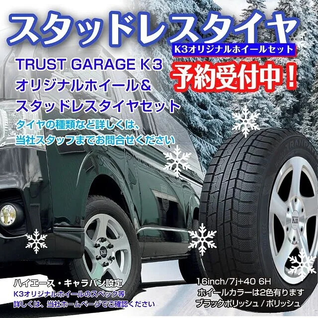 当店自慢のトラストガレージK3ハイエースオリジナルパーツのご提案、各種パーツのお取り寄せまで幅広く対応いたします。