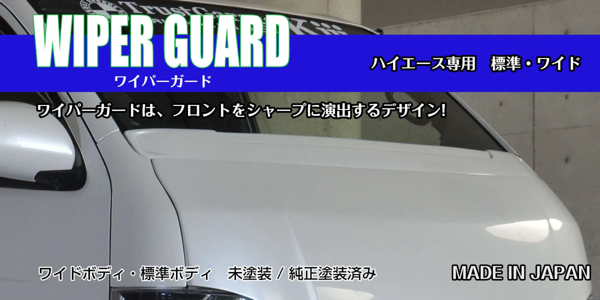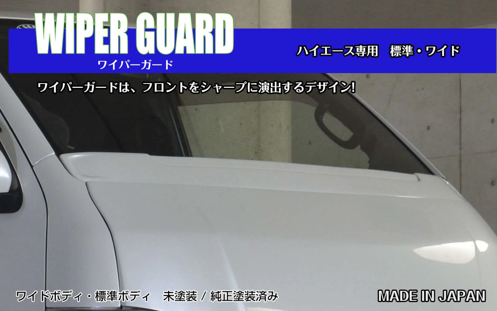 ハイエースワイパーガードを装着することで、さらなる個性を演出できるアイテムです。