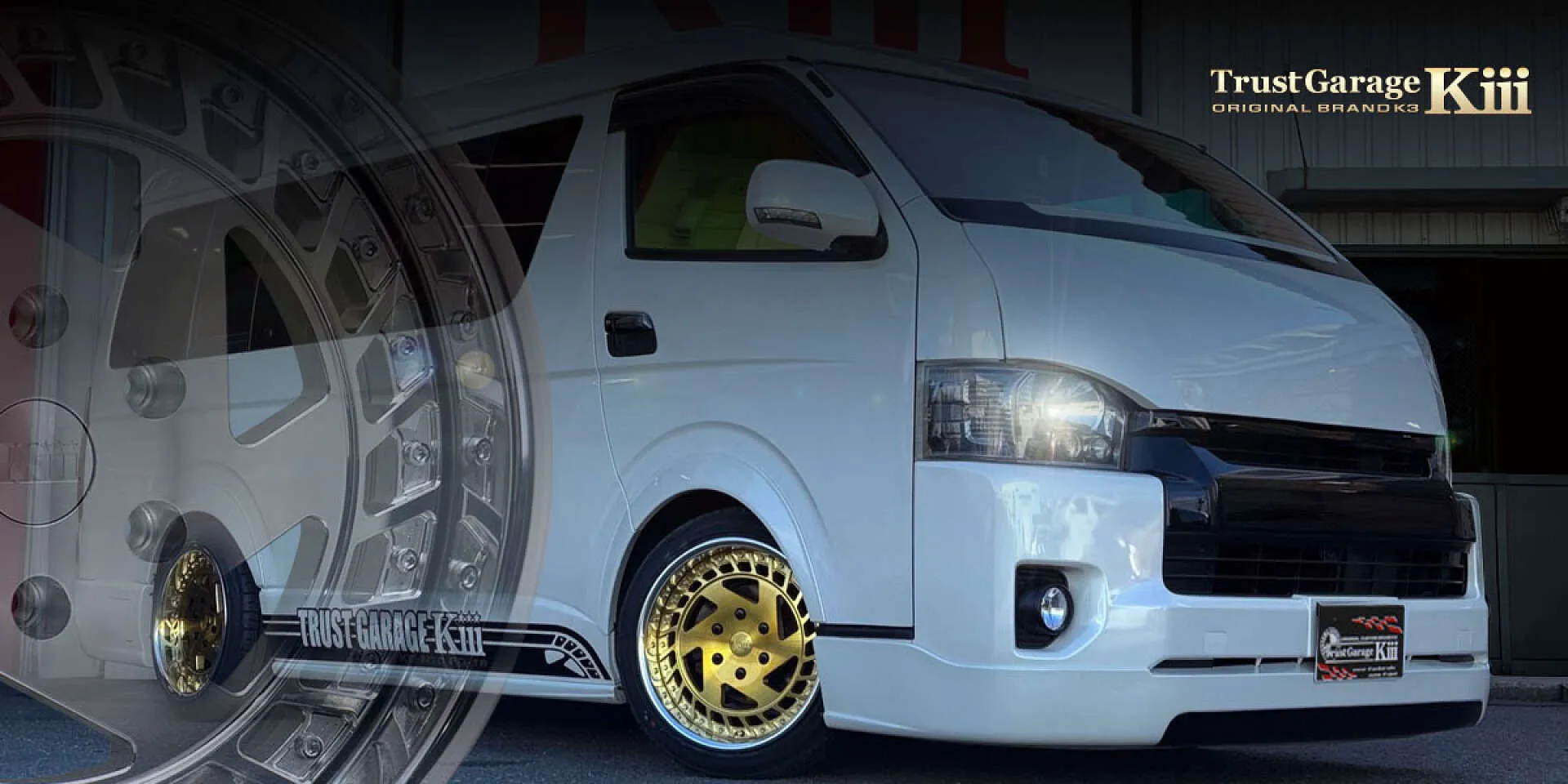 トヨタ・ハイエースを軸に、あらゆるドレスアップ・カスタム・メンテナンスを知識と技術で、ハイセンスな車を提供し、お客様の笑顔と感動を喜びに、トラストガレージK3スタッフ一同頑張っています。