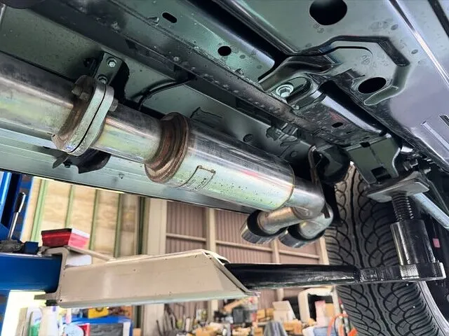 まずは純正マフラーの取り外し。2分割ではずせるのですが、まぁ1つが大きいので重かったです。用意してもらったマフラーは取説がなかったので現物を合わせて取り付け致しましたよ。マフラーハンガーを追加したりなどなど…トグロを巻いているので各部干渉が無いように位置を合わせて取り付け完了です。リフトから降ろしていざエンジン始動。うるさすぎない、いい低音が。やはりいいエンジンだといい音がしますね。もちろん排気漏れが無いかもきっちり点検しております。納車の際にオーナー様にもいい音になったありがとうと喜んで頂けました。トラストガレージKでは様々な車種のマフラー交換もできますので是非お問い合わせよろしくお願いします。