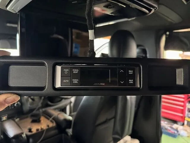 リアエアコンコントローラーはエアコン、ヒーターのカプラーに割り込ませたり、天井に配線を取り回したりグローブボックス裏のジャンクションまで配線を持って行って電源を取ったりして取り付け完了になります。動作確認で起動させてみるとめちゃくちゃかっこいいですね。これて後ろの席の人も快適に過ごせるようになりました。便利になるし、純正チックでかっこよくなるしで一石二鳥ですね。納車の際に使い方の説明などをさせて頂き、凄い喜んで頂けました。