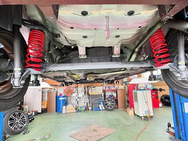 業依頼頂いた大阪府のN様のダイハツ・タントになります。ご紹介、ご依頼ありがとうございます。今回はダウンサスの取り付けになります。純正は乗り心地はいいのですが、やはり車高の高さが気になるとの事でダウンサスを導入です。軽自動車の足回りはそこまで複雑では無いのでリフトで上げて前後ともサクッと交換しちゃいました。昔のダイハツタントと違ってフロントのアッパーのナットがある場所にスペースがあるのでワイパーやカウルトップを外さず作業できるのがありがたいですね。オーナー様にもいい下がり具合になりましたと喜んで頂けたので良かったです。トラストガレージK3ではダウンサス取付や、車高調の取り付けなど足回りの作業も承っておりますので是非お問い合わせよろしくお願いします。