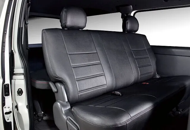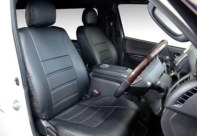 ハイエース専用タイプでジャストフィットで高級感あるレザー調シートカバー、お手入れも簡単です。