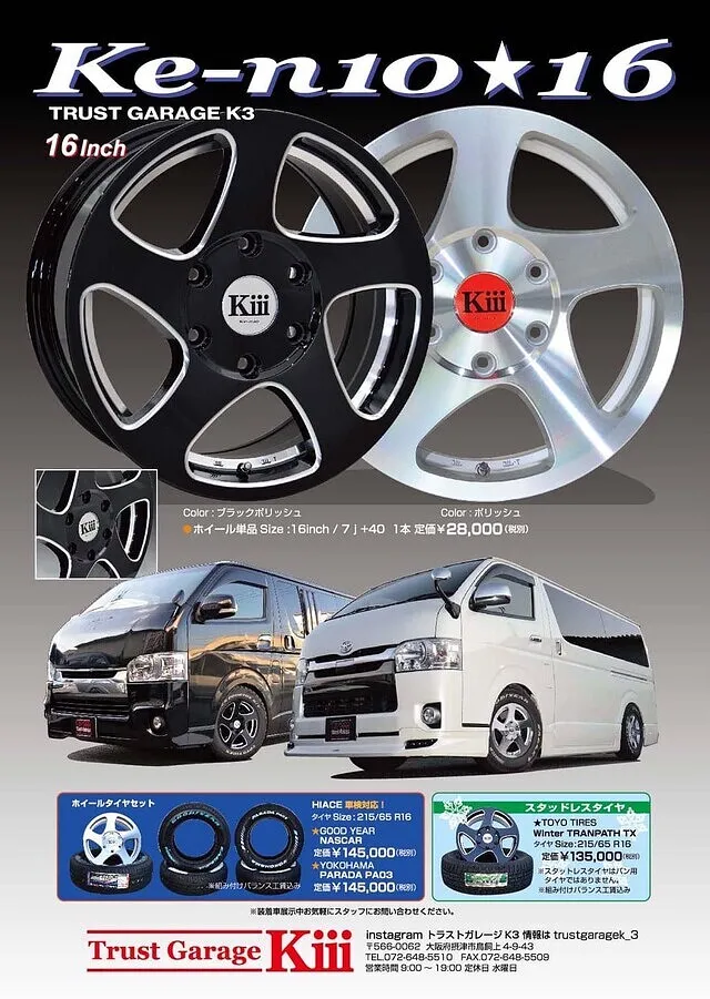 摂津市 摂津市・ハイエース・オリジナルホイール・16インチ・20インチ トラストガレージK3