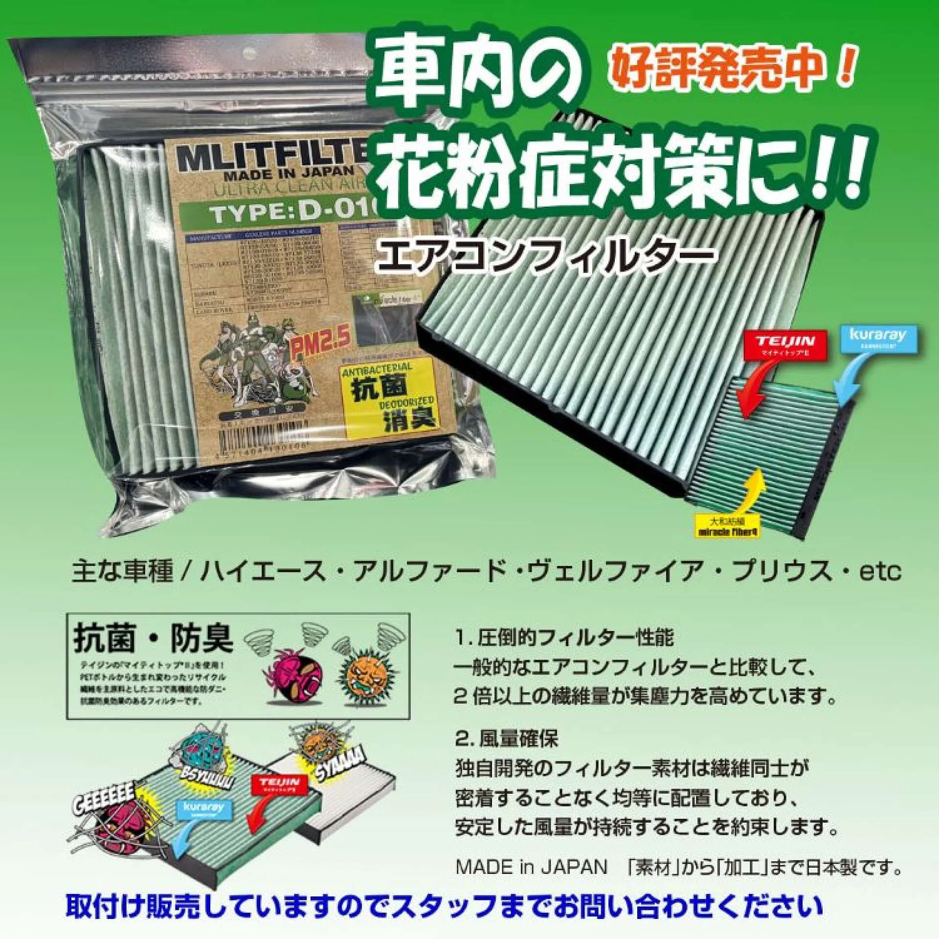 季節の変わり目や花粉の多い時期には特に頼もしい存在で、ハイエースやアルファードなど様々な国産車・外車にも対応しています。