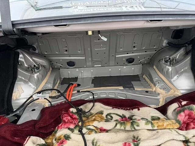 さて今回は大阪府のU様のクラウンになります。珍しい色のクラウンですよ、今回はお盆休み前にエンジンチェックランプが付いてしまったのでK3にて診断機で見たところハイブリッドバッテリーのエラーが付いておりました。こればかりはハイブリッド車の宿命ですね、その日は一旦エラーを消しまして、今回にハイブリッドバッテリーの交換になりました。クラウンのハイブリッドバッテリーはトランクの奥にあり、トランクからしか作業と出し入れができないという…まずはトランクの内張りを外しましてハイブリッドバッテリーが見えるようにします、